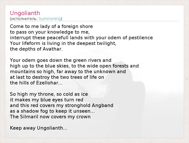А как ты думаешь, о чем песня "Ungolianth" ?