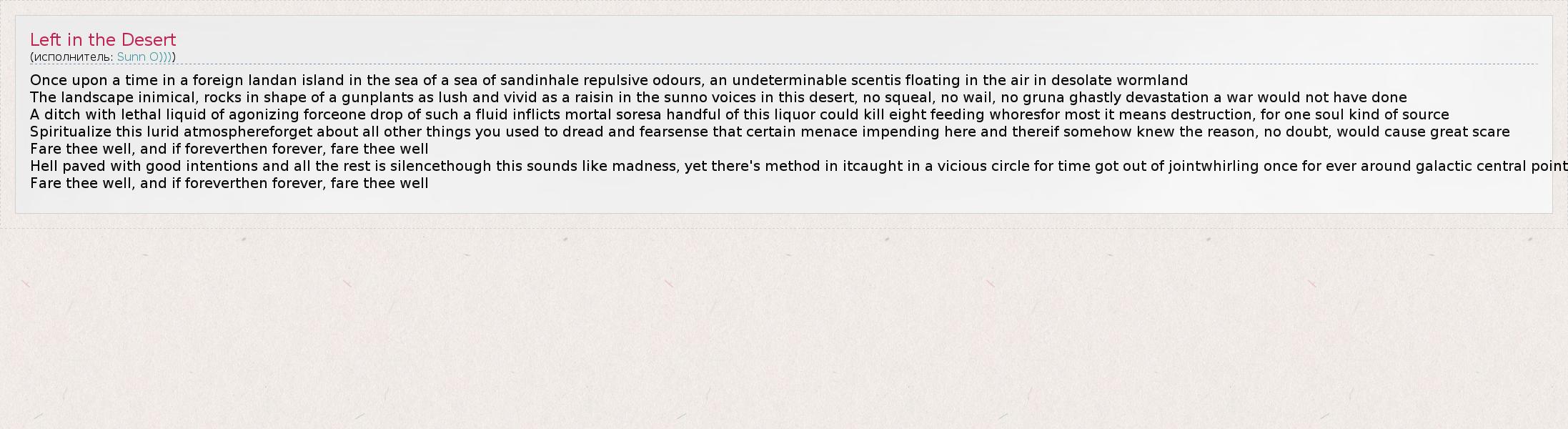 А как ты думаешь, о чем песня "Left in the Desert" ?