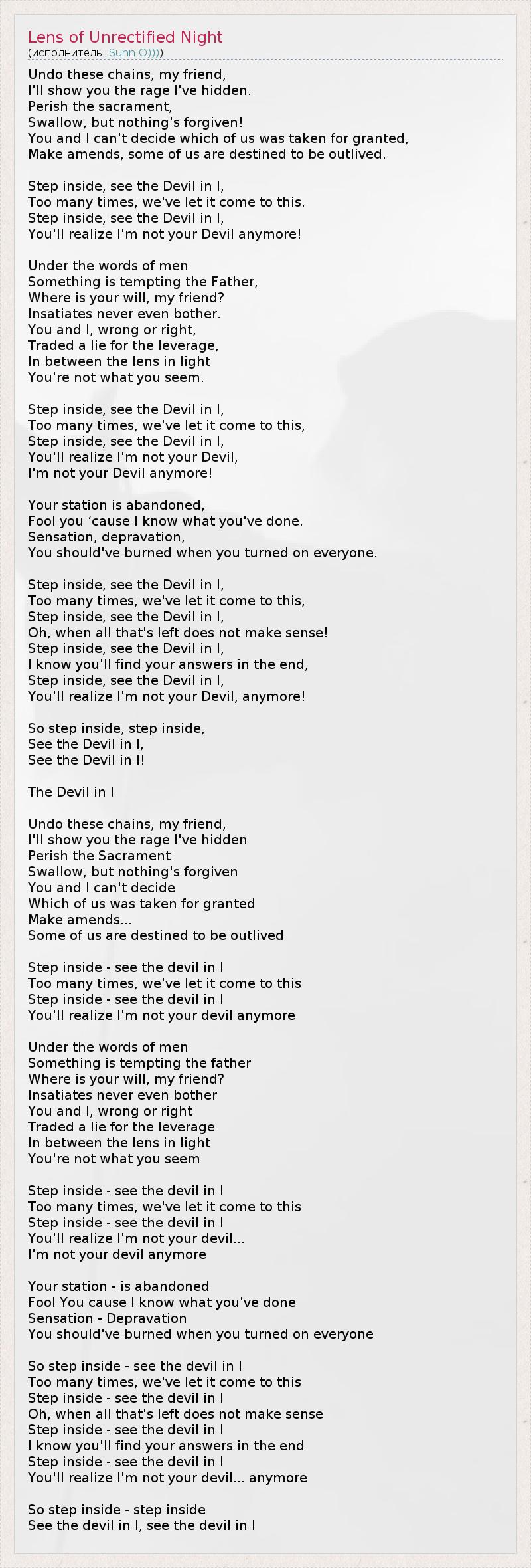 А как ты думаешь, о чем песня "Lens of Unrectified Night" ?