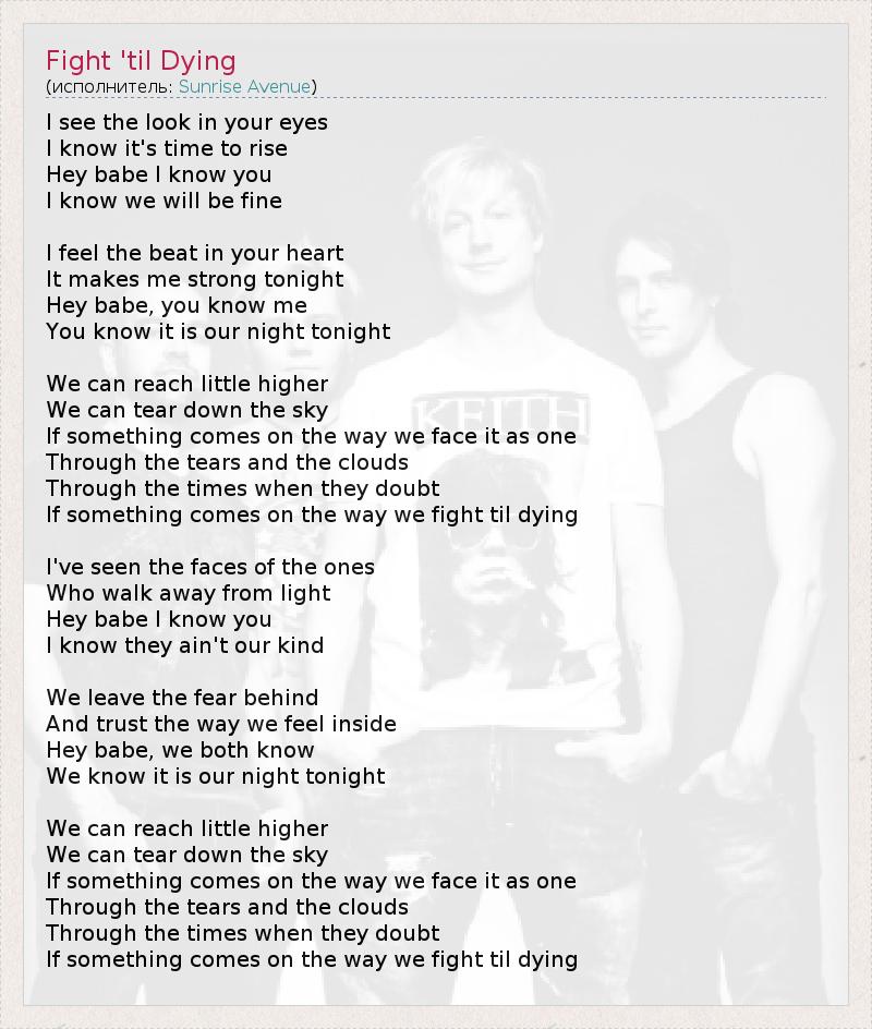 А как ты думаешь, о чем песня "Fight 'til Dying" ?