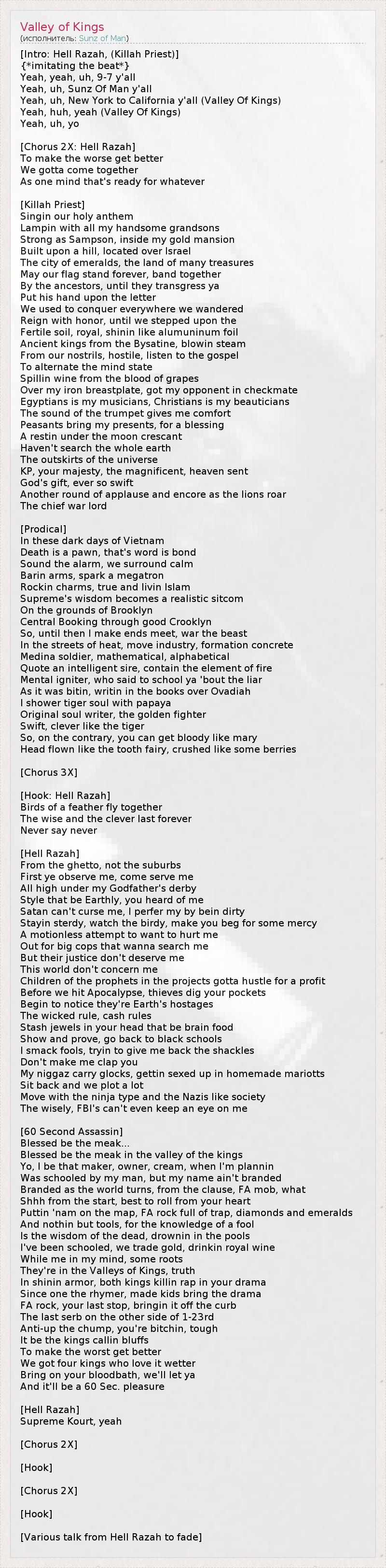 А как ты думаешь, о чем песня "Valley of Kings" ?