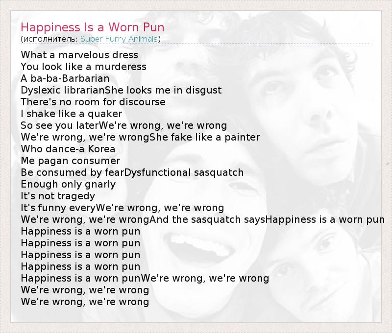А как ты думаешь, о чем песня "Happiness Is a Worn Pun" ?