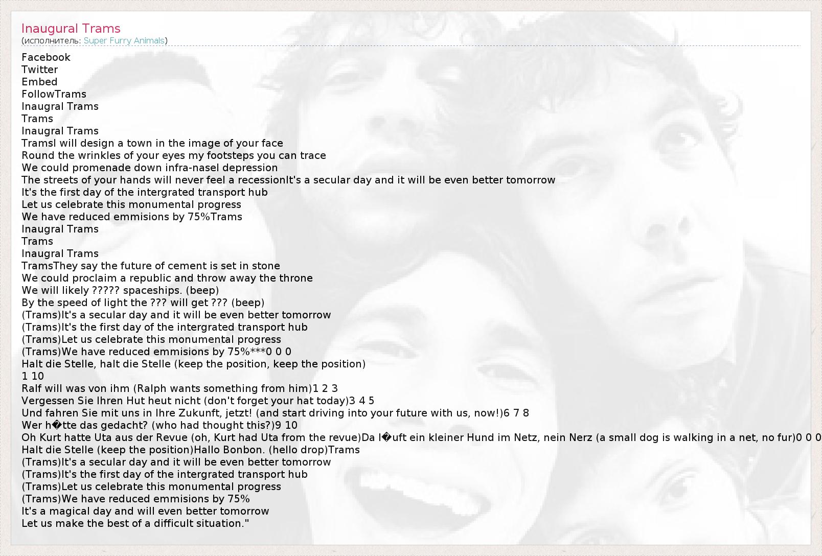 А как ты думаешь, о чем песня "Inaugural Trams" ?