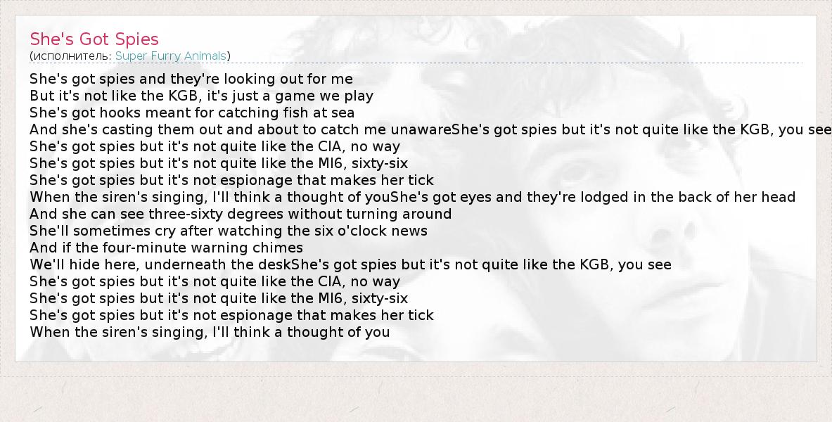 А как ты думаешь, о чем песня "She's Got Spies" ?