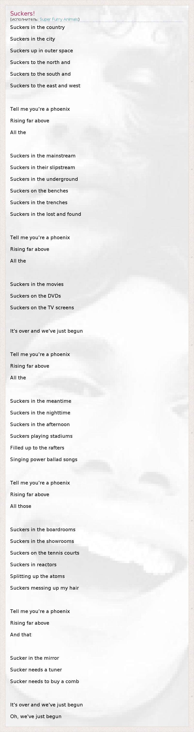 Это интересно:Super Furry Animals - валлийская команда, всерьез замахнувшаяся на всемирную славу. Первым этапом на этом тернистом пути стало для валлийцев покорение разборчивой лондонской публики, а затем и всей Великобритании. Сейчас валлийцы, обозревая пройденный за десятилетие путь, шаг за шагом осваиваются на суровых просторах международного шоу-бизнеса. Год рождения Super Furry Animals - 1993-й. Место рождения... продолжение