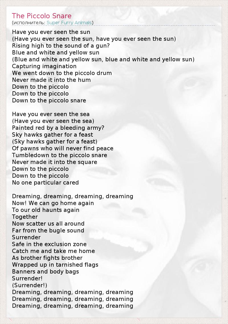 А как ты думаешь, о чем песня "The Piccolo Snare" ?