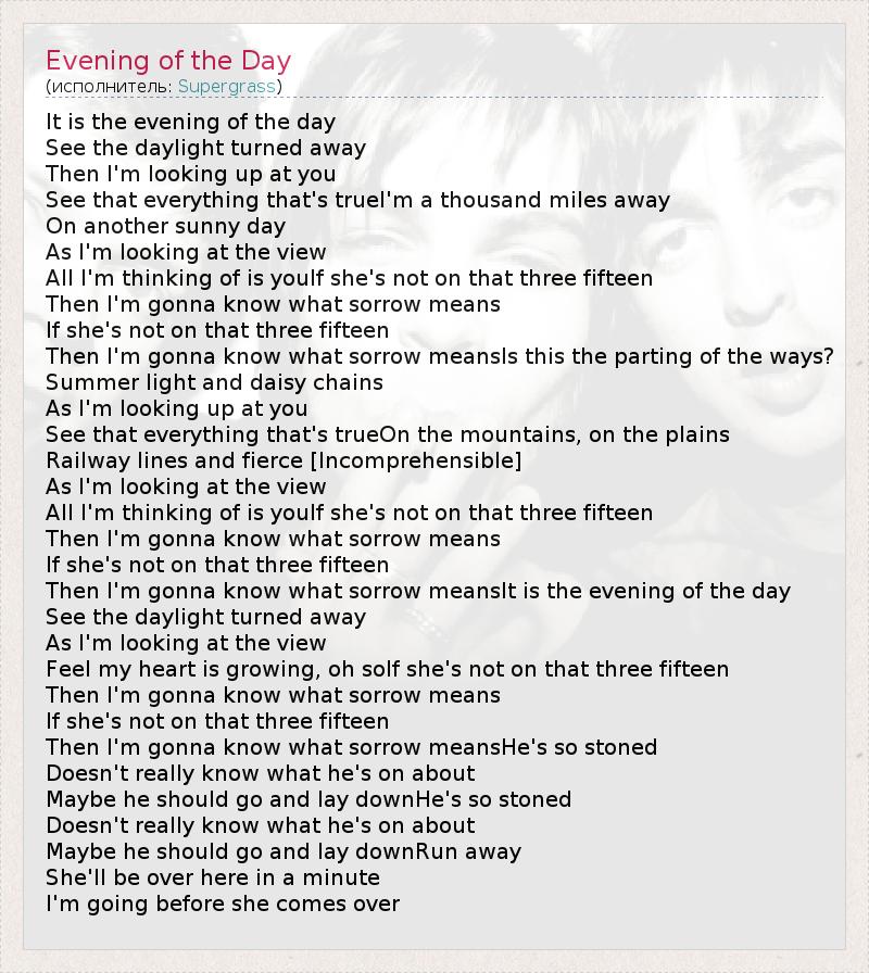 А как ты думаешь, о чем песня "Evening of the Day" ?