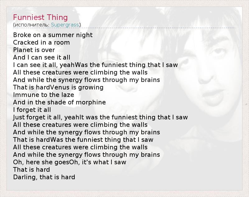 А как ты думаешь, о чем песня "Funniest Thing" ?