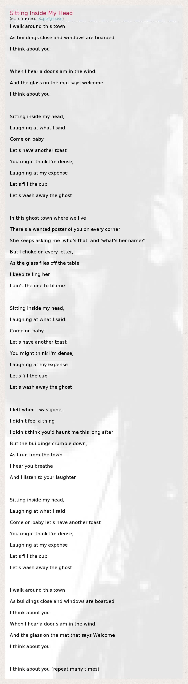 А как ты думаешь, о чем песня "Sitting Inside My Head" ?