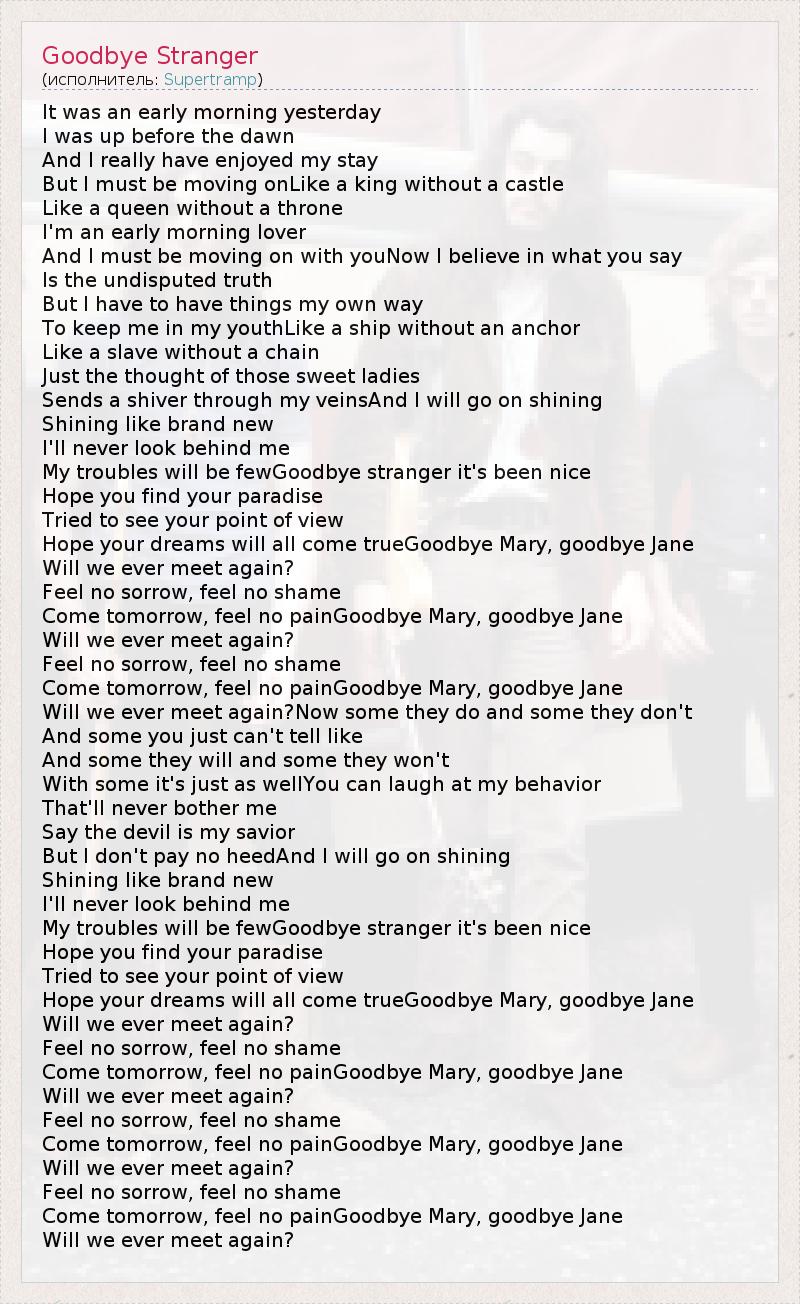 А как ты думаешь, о чем песня "Goodbye Stranger" ?