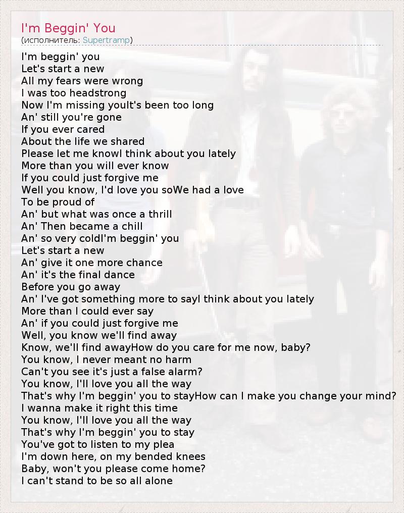 I'm beggin' you