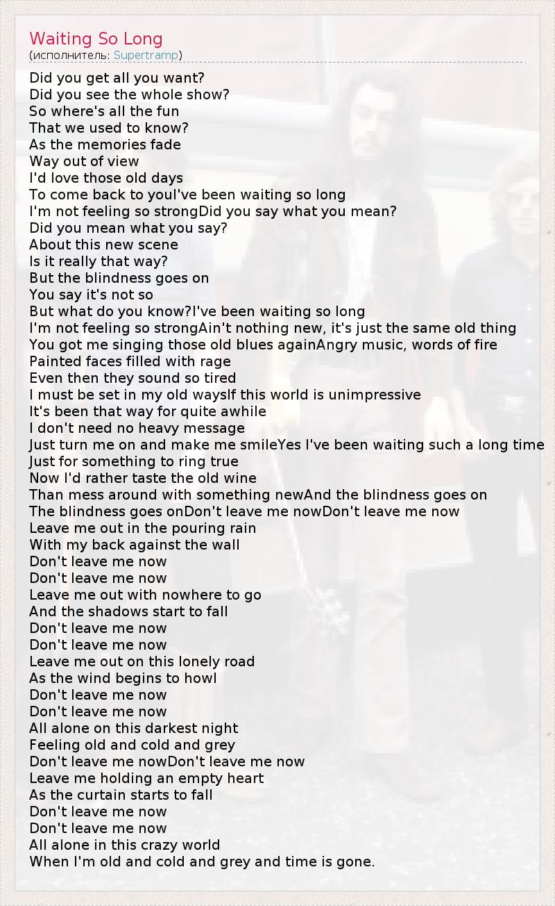 А как ты думаешь, о чем песня "Waiting So Long" ?