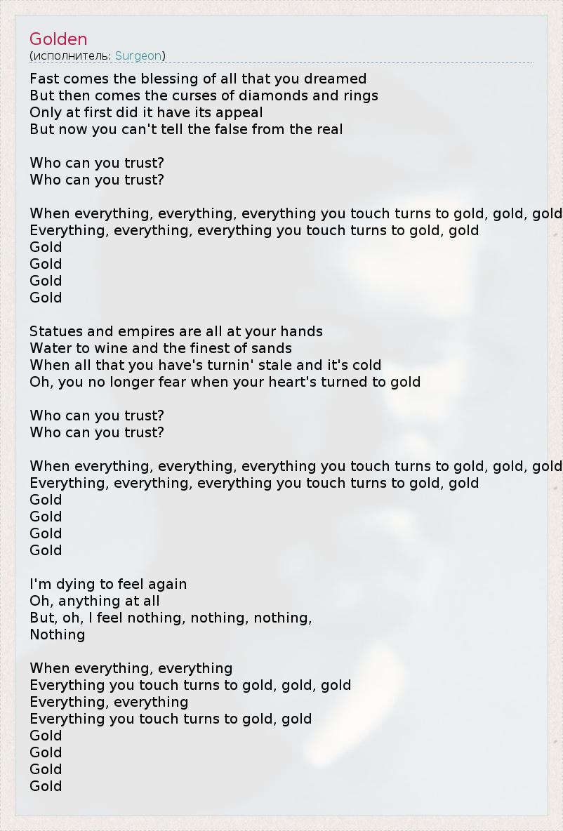 Всё, к чему ты прикоснешься, обращается в золото, золото,
