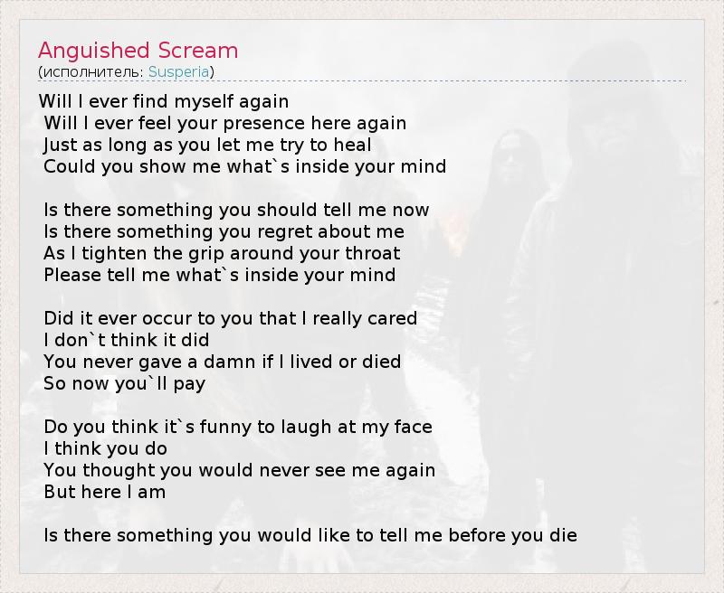 А как ты думаешь, о чем песня "Anguished Scream" ?