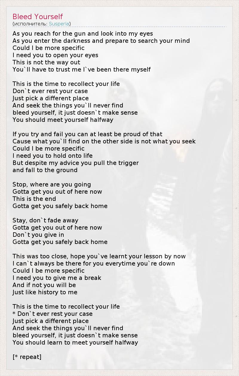 А как ты думаешь, о чем песня "Bleed Yourself" ?
