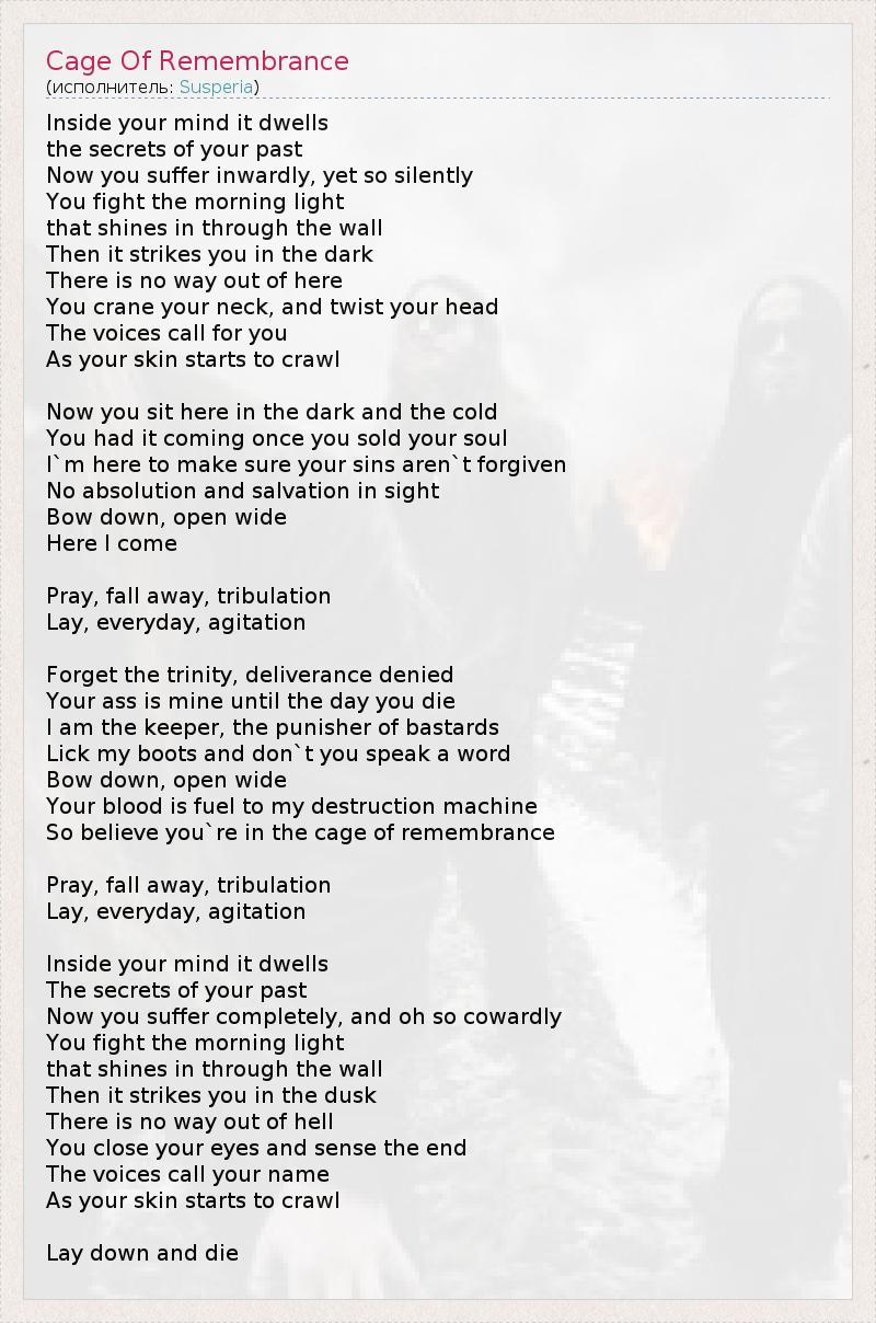 А как ты думаешь, о чем песня "Cage Of Remembrance" ?