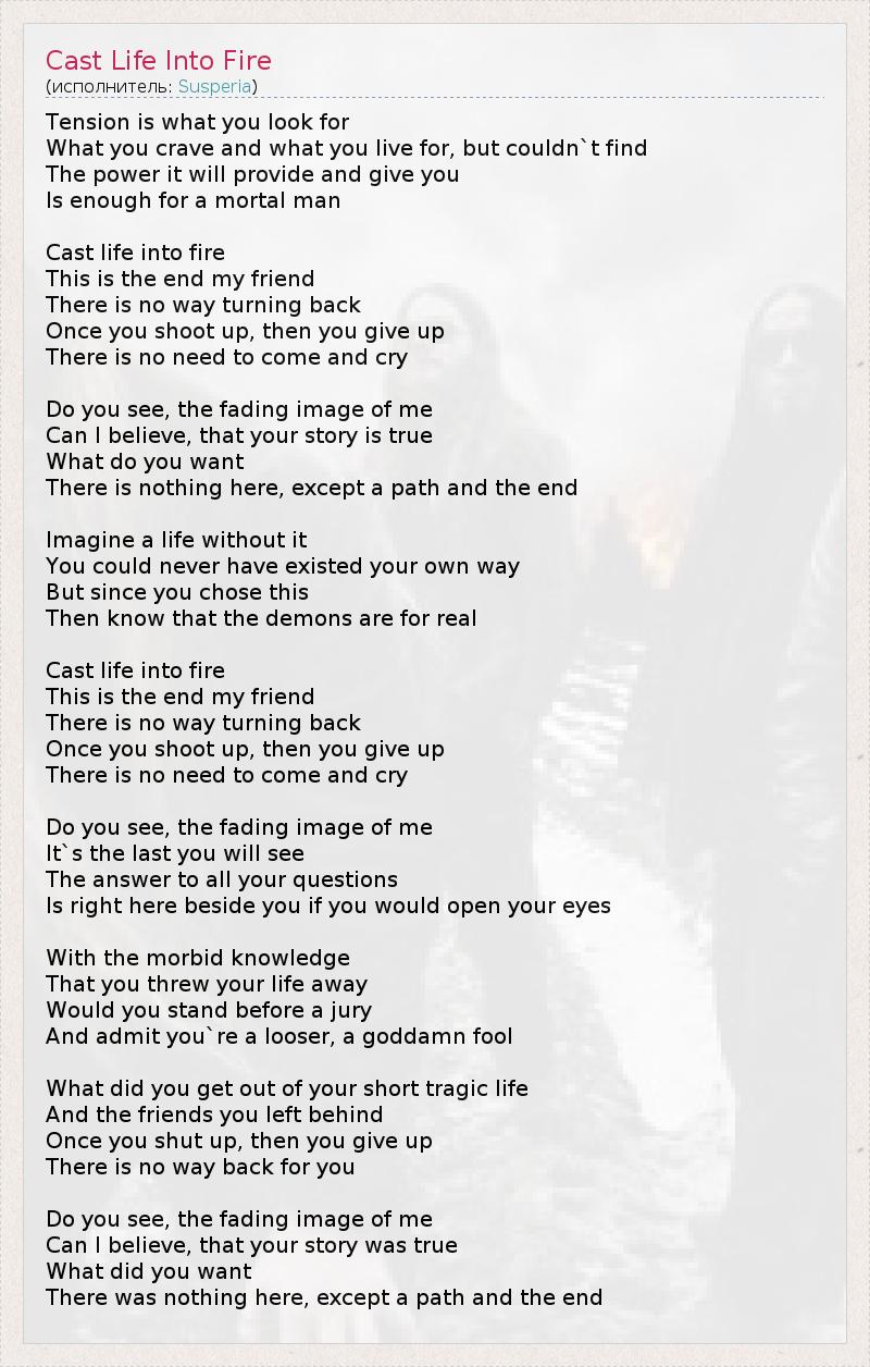А как ты думаешь, о чем песня "Cast Life Into Fire" ?