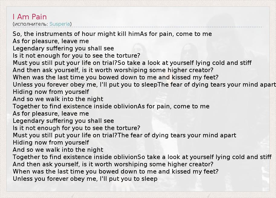 А как ты думаешь, о чем песня "I Am Pain" ?