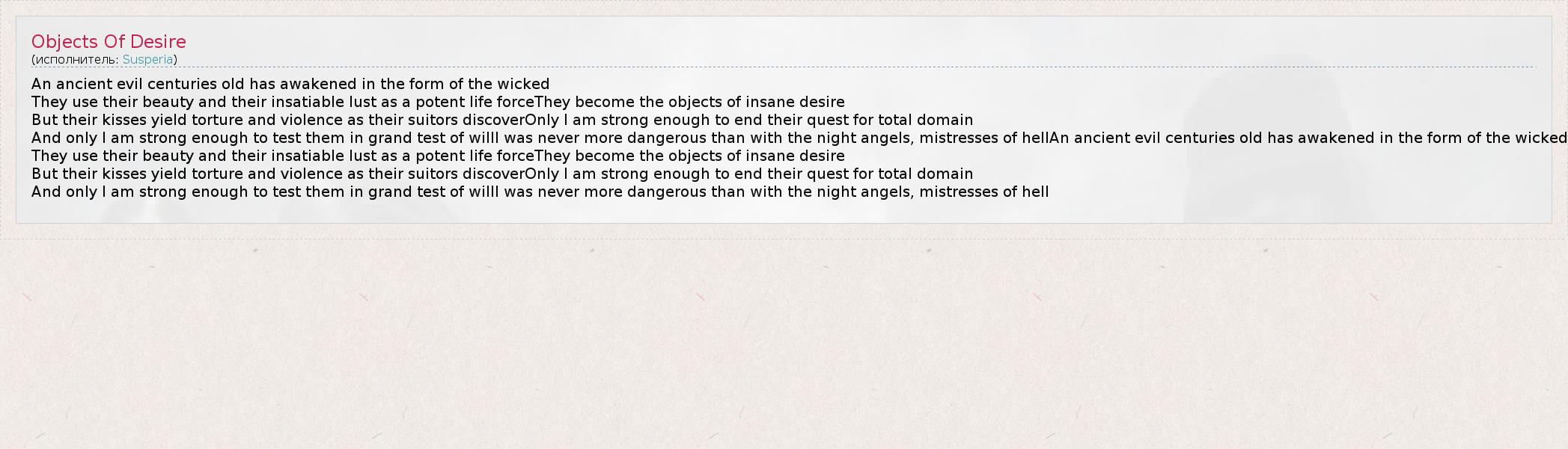 А как ты думаешь, о чем песня "Objects Of Desire" ?