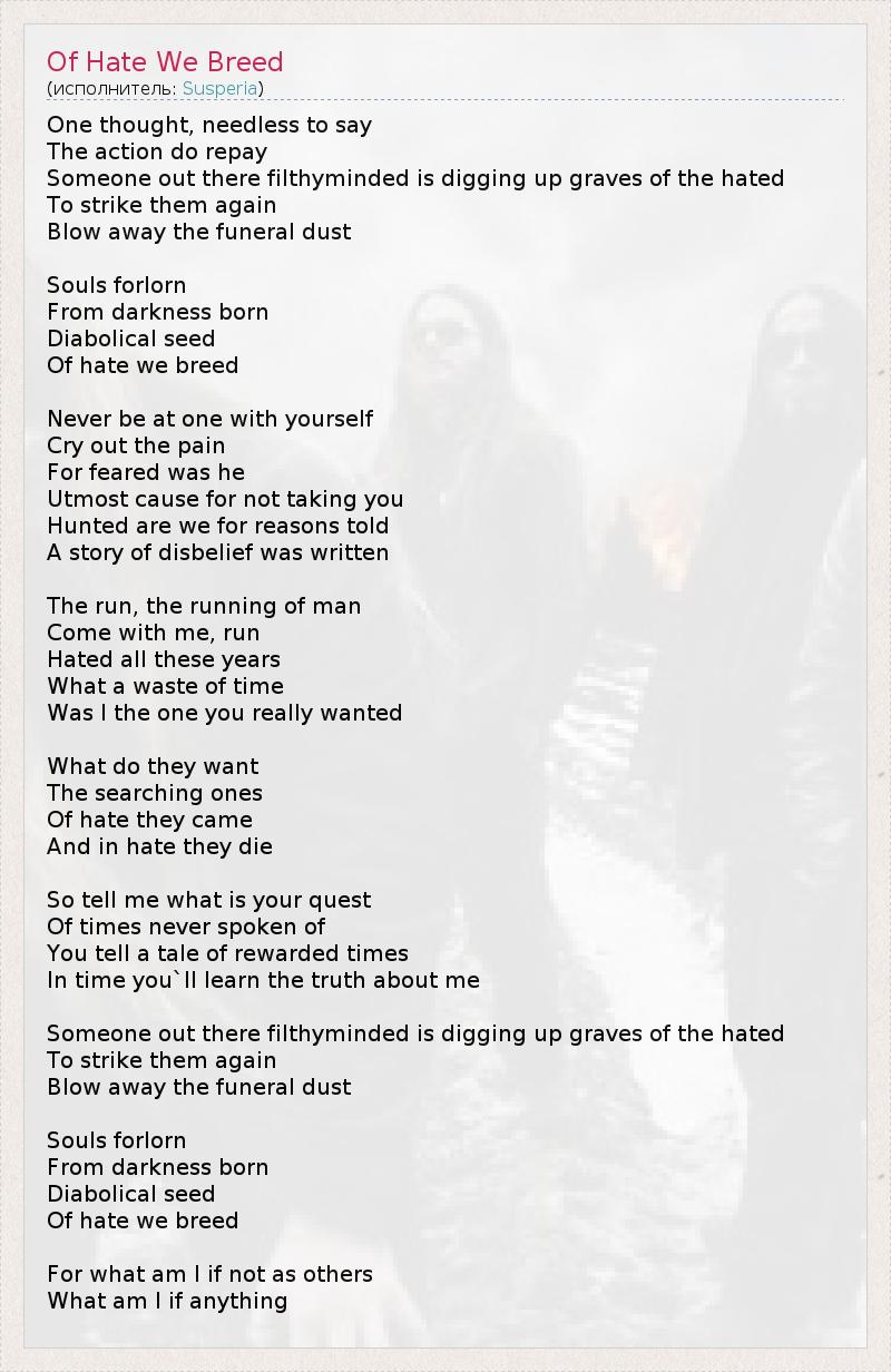 А как ты думаешь, о чем песня "Of Hate We Breed" ?
