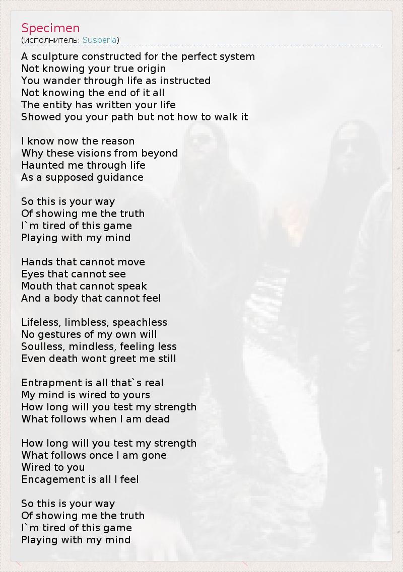 А как ты думаешь, о чем песня "Specimen" ?