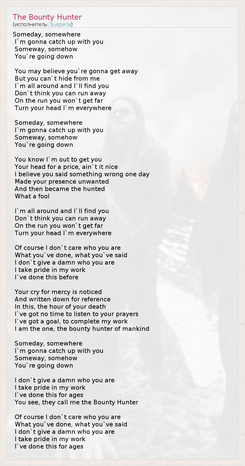 А как ты думаешь, о чем песня "The Bounty Hunter" ?