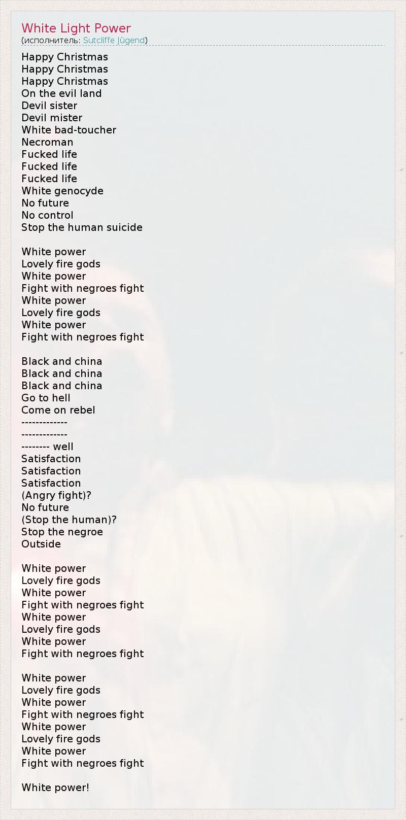 Это интересно:История группы Sutcliffe Jugend тесно связана с другой культовой индустриальной группой - Whitehouse, бывшие участники которой Кевин Томпкинс и Фил Тэйлор довольно быстро вышли из игры и в 1982 году начали собственное предприятие по очистке мозгов от благ цивилизации. Через некоторое время группа выпустила бокс из 10 кассет под названием "We Spit On Their Graves", который быстро стал предметом гордости... продолжение
