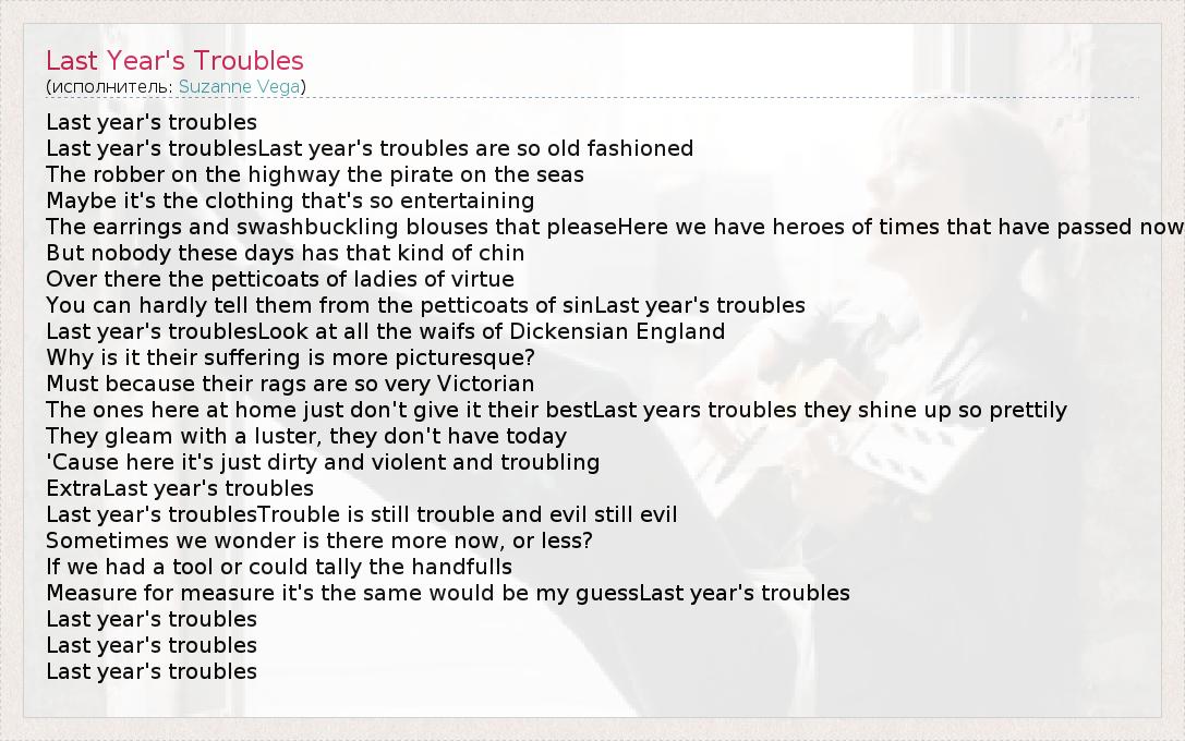 А как ты думаешь, о чем песня "Last Year's Troubles" ?
