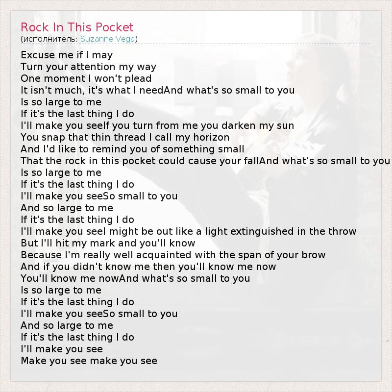 А как ты думаешь, о чем песня "Rock In This Pocket" ?