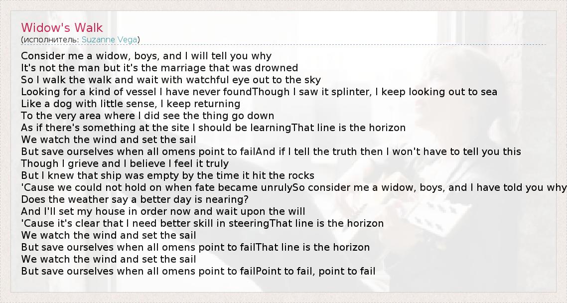 А как ты думаешь, о чем песня "Widow's Walk" ?