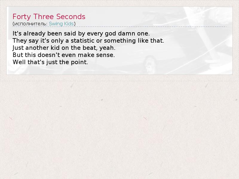 А как ты думаешь, о чем песня "Forty Three Seconds" ?