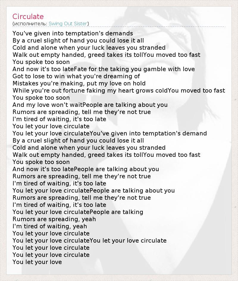 You let your love circulatePeople are talking