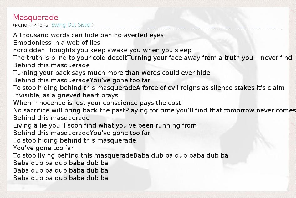 To stop living behind this masqueradeBaba dub ba dub baba dub ba