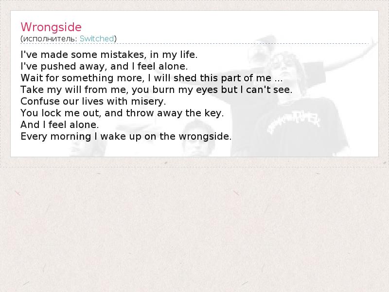 Это интересно:Американская nu metal команда «Switched» родом из Северного Роялтона, штат Огайо. Известная многим по выступлениям на знаменитых фестивалях «Ozzfest» и «Vans Warped Tour» группа «Switched» записала и выпустила свой дебютный альбом «Subject To Change» для лэйбла «Immortal Records» в 2001 году. Пластинка разошлась по всему миру тиражем в сто тысяч копий. В период записи своего очередного альбома, разногласия в рядах группы... продолжение