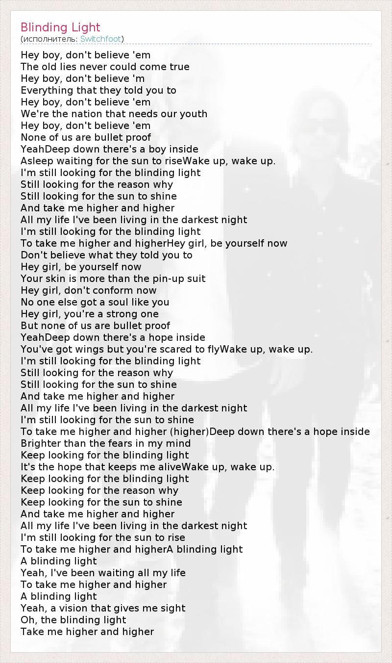 А как ты думаешь, о чем песня "Blinding Light" ?