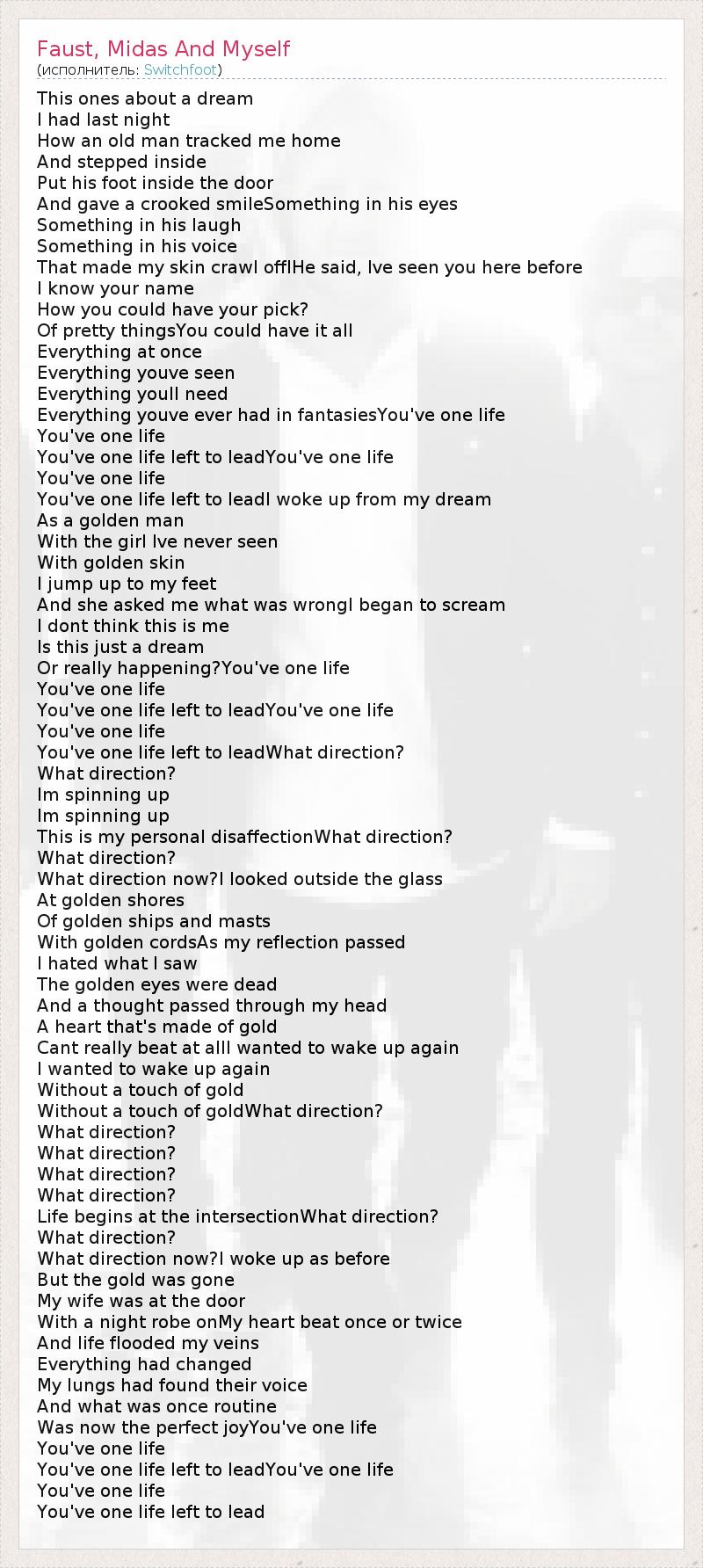 А как ты думаешь, о чем песня "Faust, Midas And Myself" ?