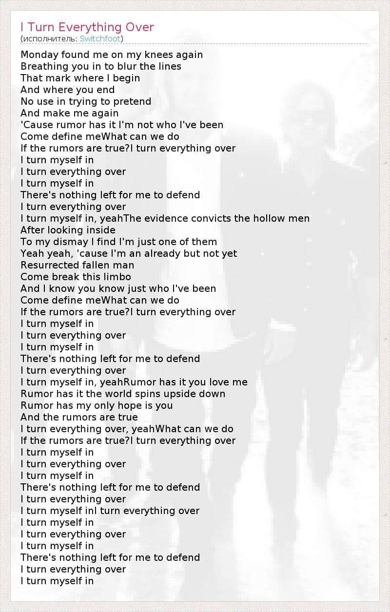 А как ты думаешь, о чем песня "I Turn Everything Over" ?