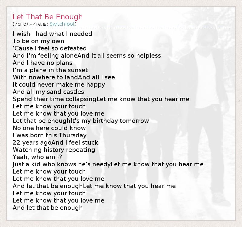 А как ты думаешь, о чем песня "Let That Be Enough" ?