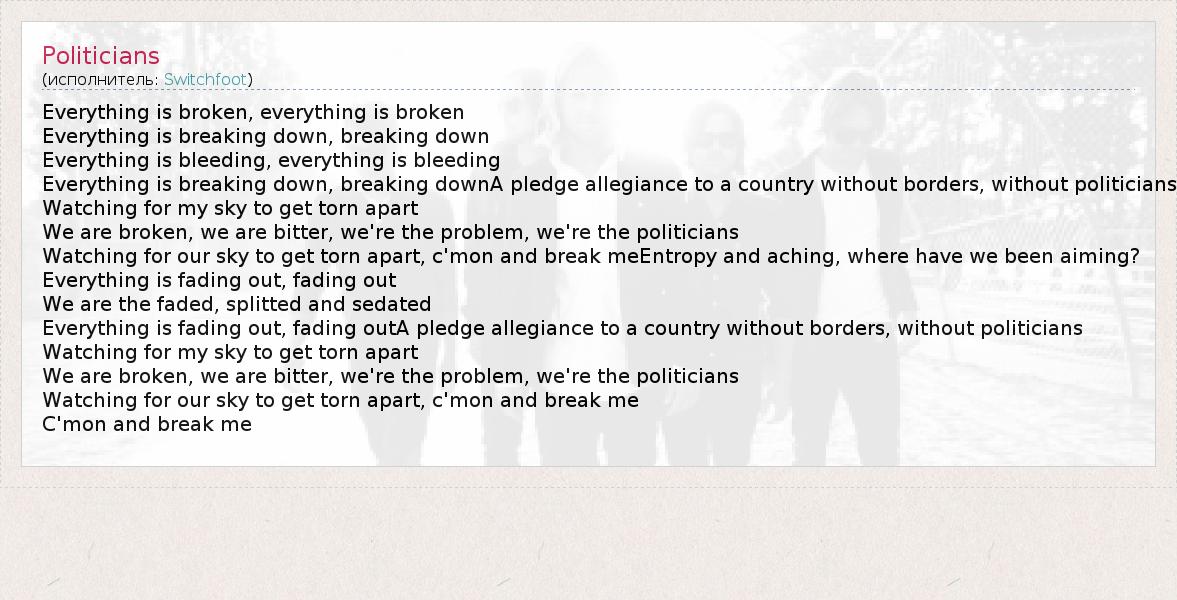 Everything is breaking down, breaking downA pledge allegiance to a country without borders, without politicians