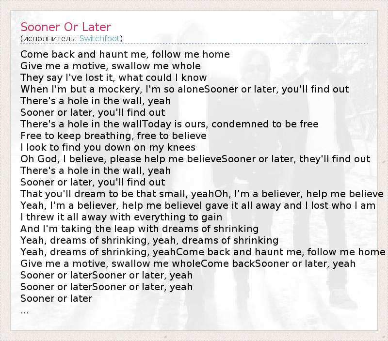 А как ты думаешь, о чем песня "Sooner Or Later" ?