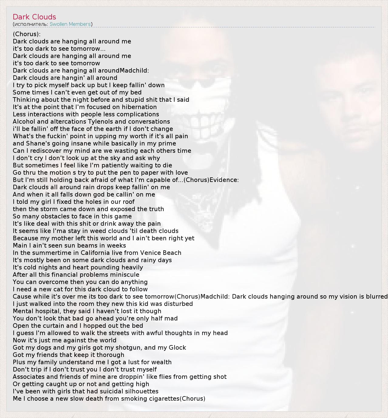 А как ты думаешь, о чем песня "Dark Clouds" ?