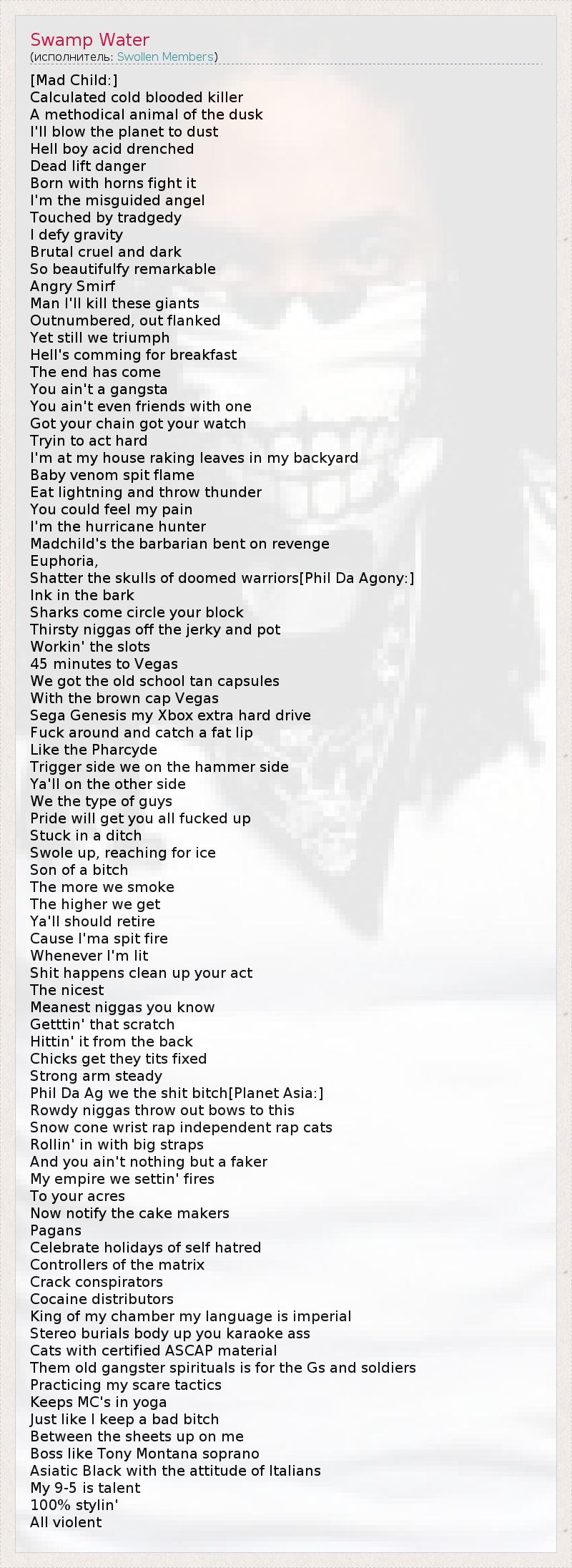 А как ты думаешь, о чем песня "Swamp Water" ?