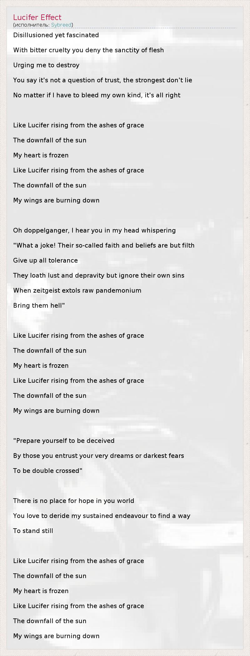 А как ты думаешь, о чем песня "Lucifer Effect" ?