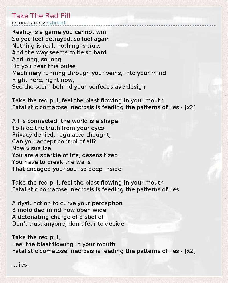 А как ты думаешь, о чем песня "Take The Red Pill" ?