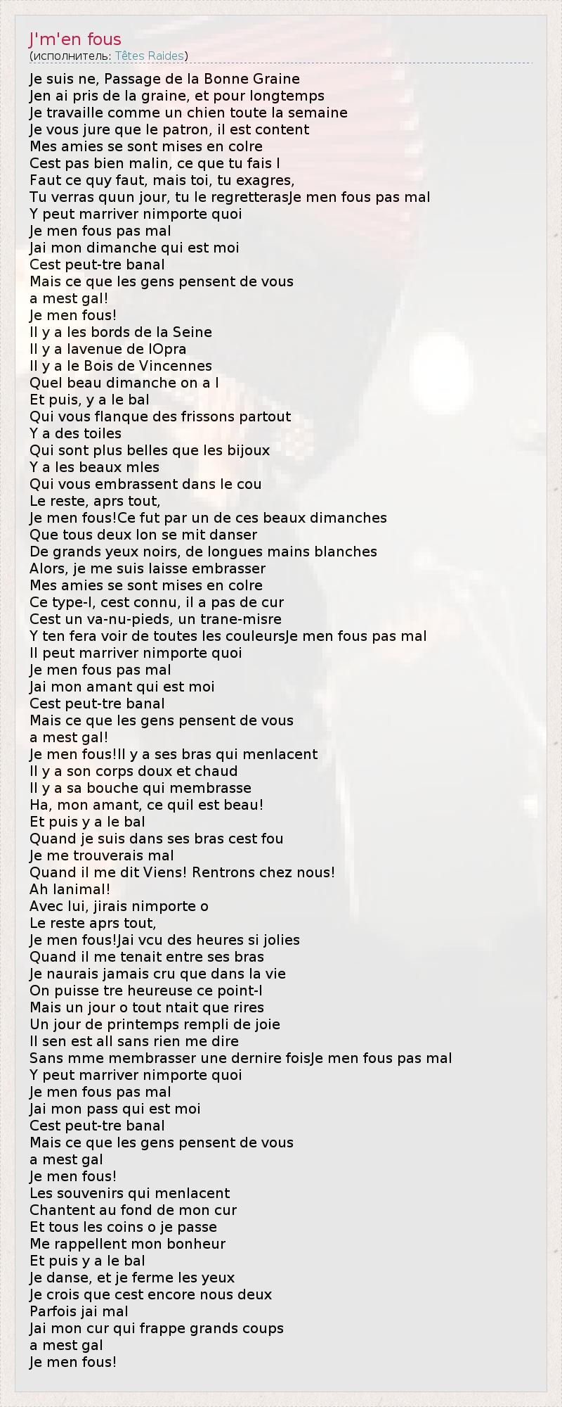 А как ты думаешь, о чем песня "J'm'en fous" ?