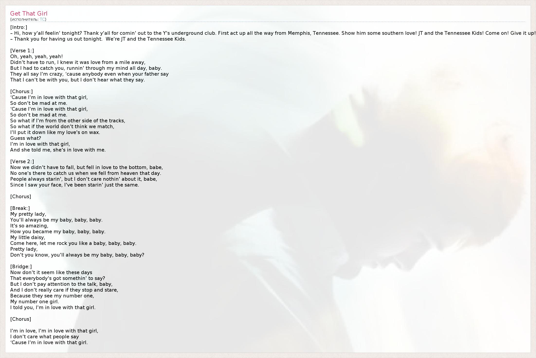 А как ты думаешь, о чем песня "Get That Girl" ?