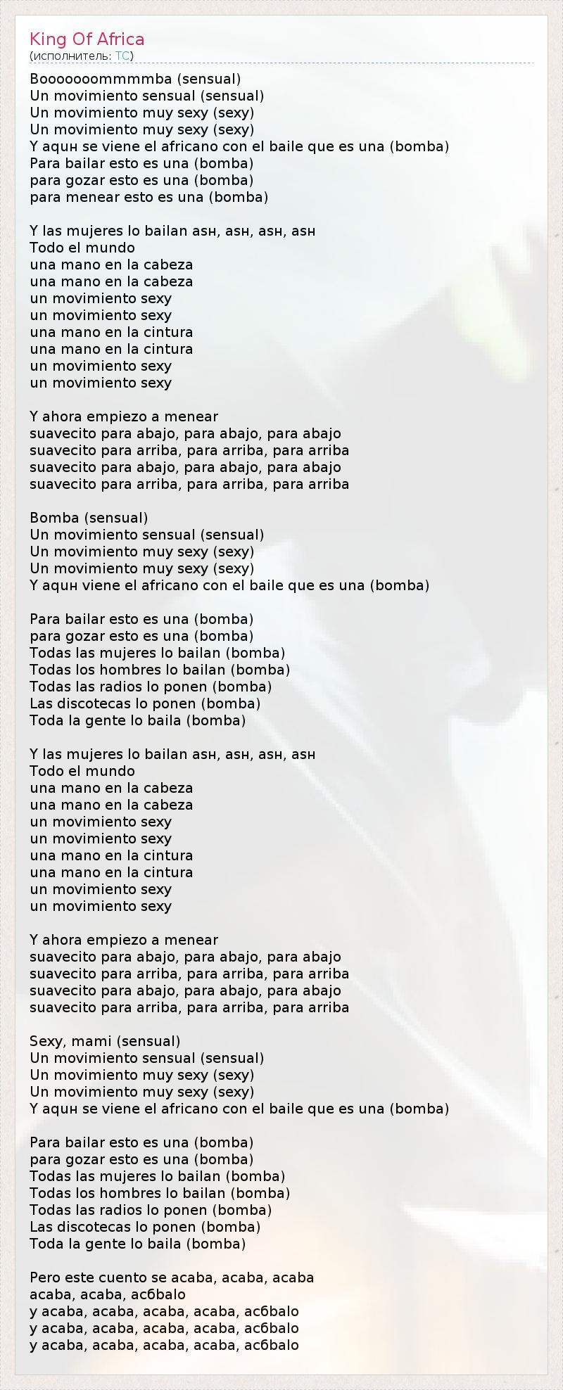 А как ты думаешь, о чем песня "King Of Africa" ?
