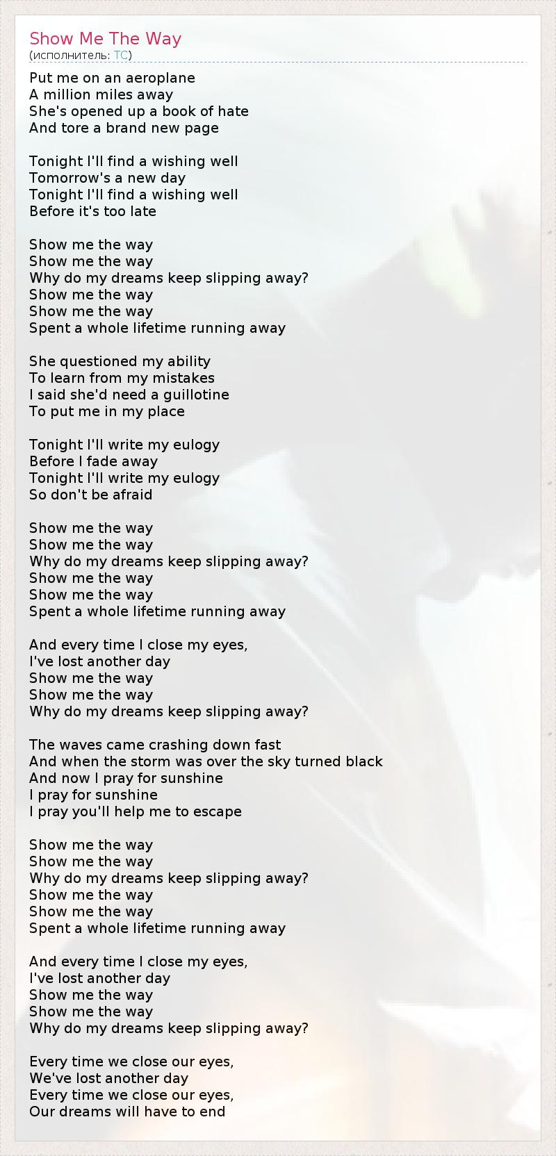 А как ты думаешь, о чем песня "Show Me The Way" ?