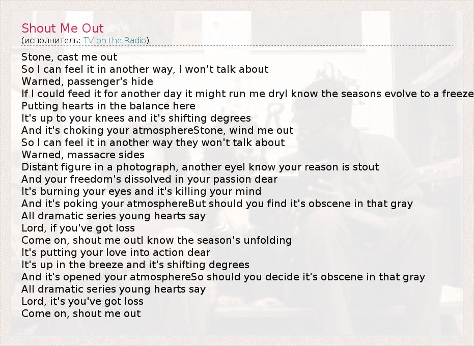 А как ты думаешь, о чем песня "Shout Me Out" ?