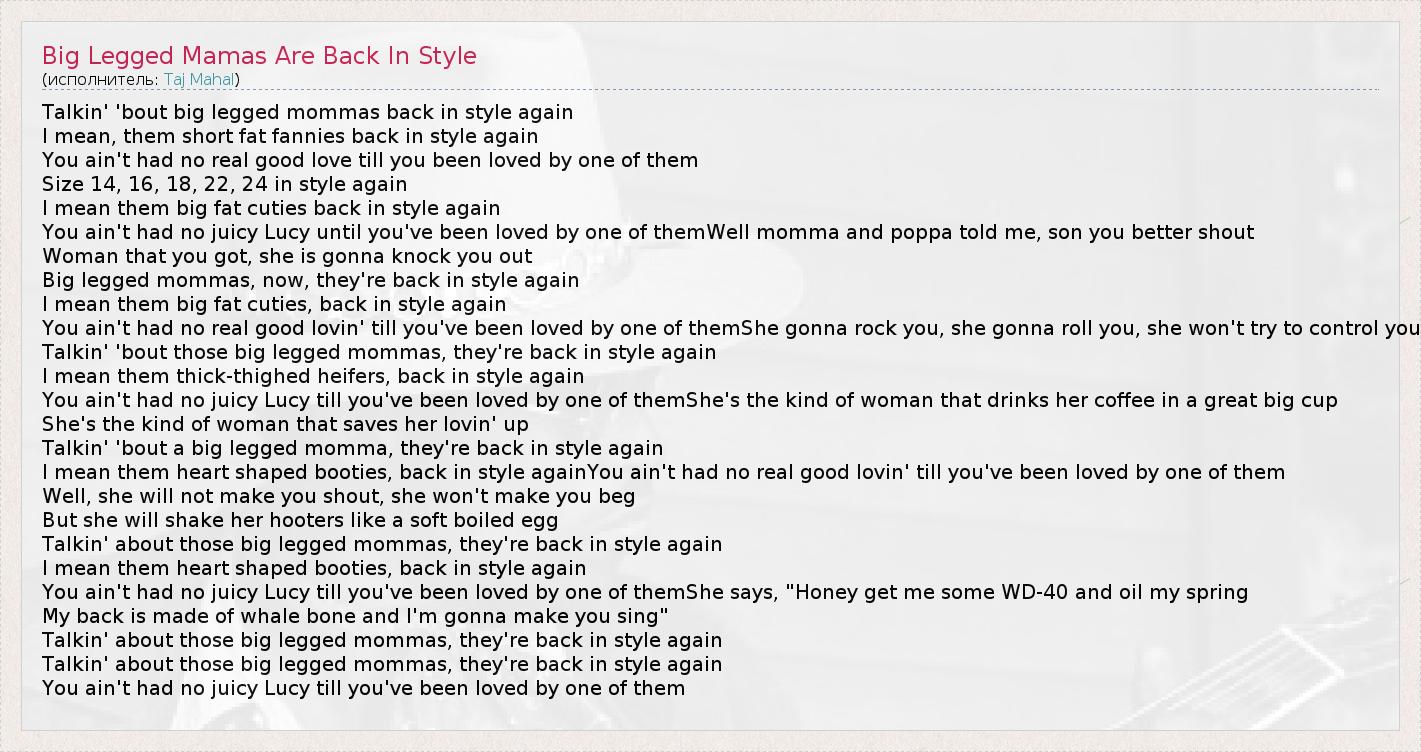 А как ты думаешь, о чем песня "Big Legged Mamas Are Back In Style" ?